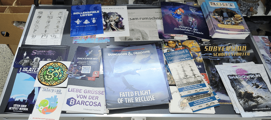 Unseren Termin am vergangenen Freitag haben wir dann ganz unter das Thema „Gratisrollenspieltag“ gestellt und an unsere begeisterten Besucher:innen die Goodies verteilt.