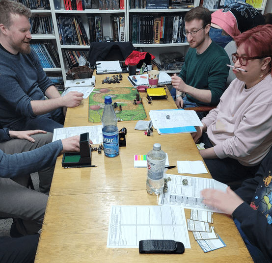Besonders erfreulich war, dass sogar eine spontane Besucherin, die über Werbung auf die Veranstaltung aufmerksam geworden war, kurzfristig in eine Spielrunde integriert werden konnte. Darüber hinaus gab es auch Gäste, die einfach zuschauten und so erste Einblicke in das Hobby gewinnen konnten.