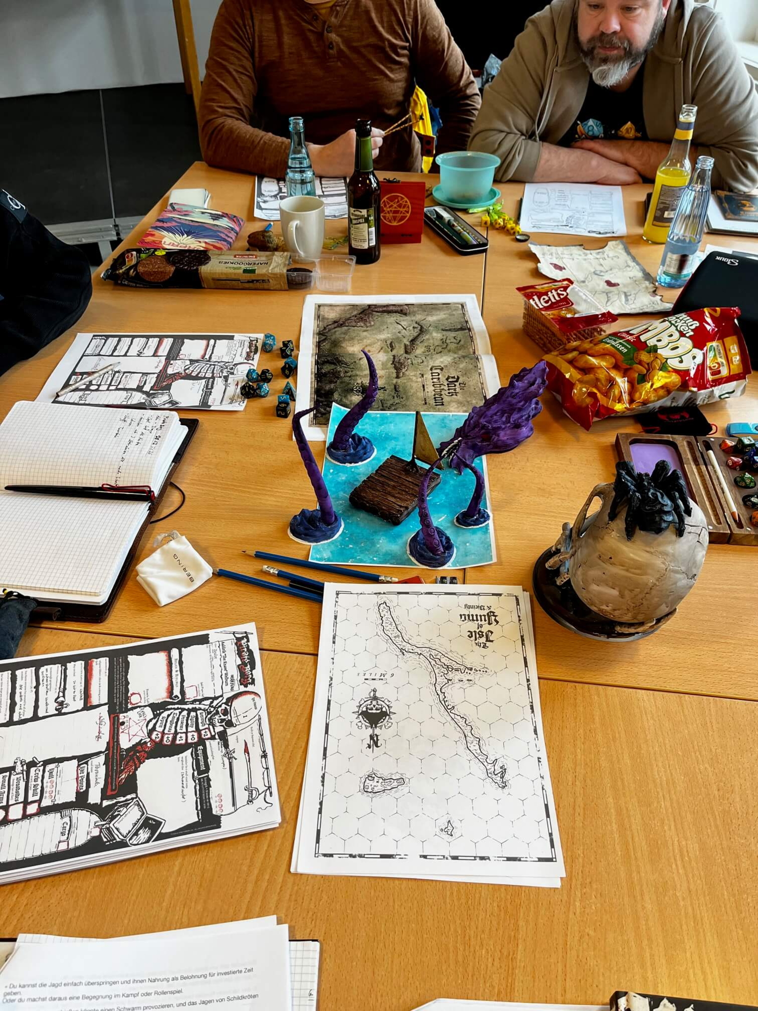 Am Vormittag wurden drei Spielrunden angeboten: Warhammer Fantasy, Pathfinder sowie Alien. Am Nachmittag folgten weitere drei Runden mit Mausritter (speziell für Kinder), Dungeons & Dragons und Pirate Borg. Zusätzlich fand parallel eine Runde HeroQuest statt, sodass für unterschiedliche Altersgruppen und Interessen ein abwechslungsreiches Programm geboten werden konnte.
